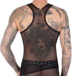 Debardeur DESTRUCTIVE 1DTT01. Debardeur très sexy en résille sur le haut. Matière brillante. Ceinture élastique. Empiècement argenté sur l’épaule gauche. Logo DESTRUCTIVE en silicone. Guide des Tailles S 75-80cm, M 80-90cm, L 90-101cm, XL 101-110cm. 80 % Polyamide, 20% Elasthanne.