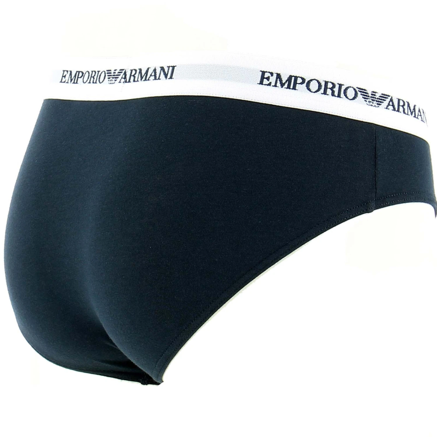 Pack de 2 Slips Emporio Armani 111321 C717 en 95% Coton, 5% Elasthanne. 1 slip blanc et 1 slip Marine.