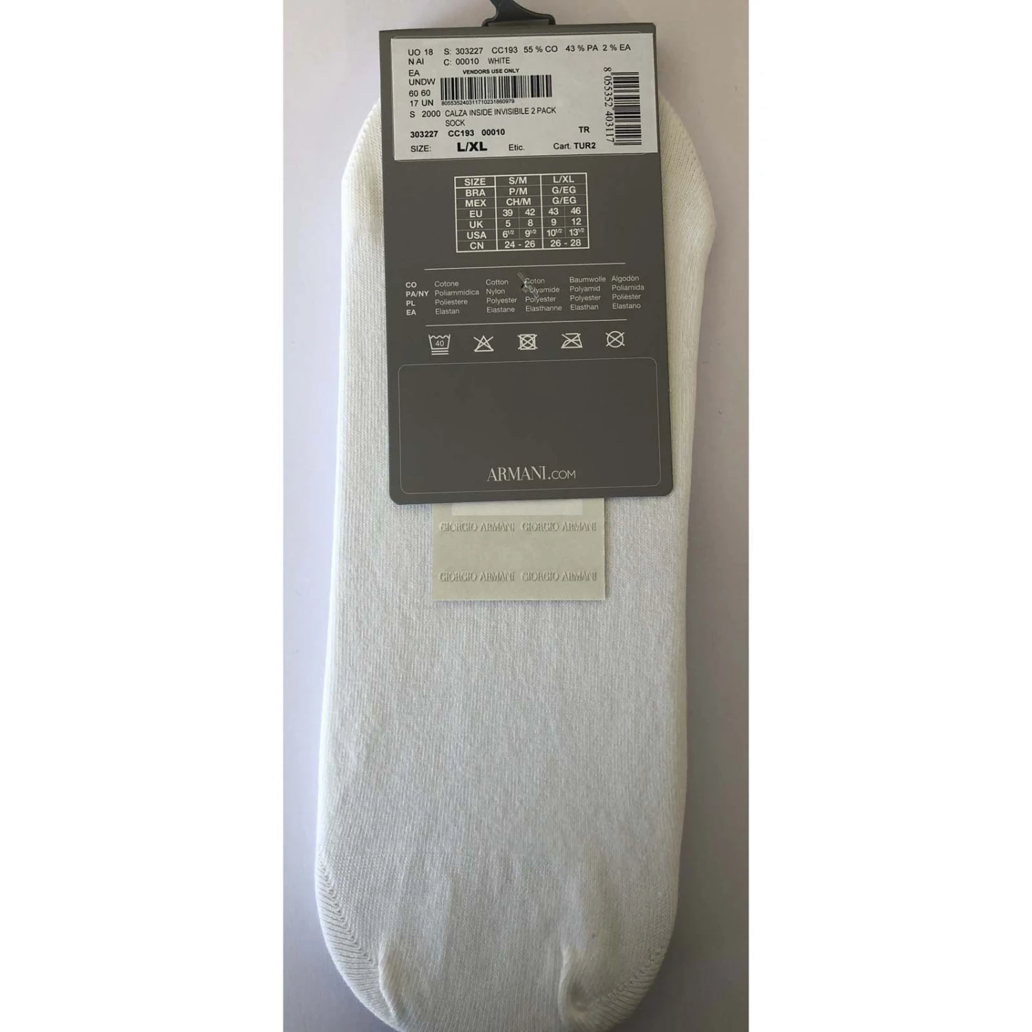 Pack de 2 paires de Chaussettes Emporio Armani 303227 C193. Chaussettes très confortables. Très légères. 75% Coton, 23% Polyamide, 2% Elasthanne.