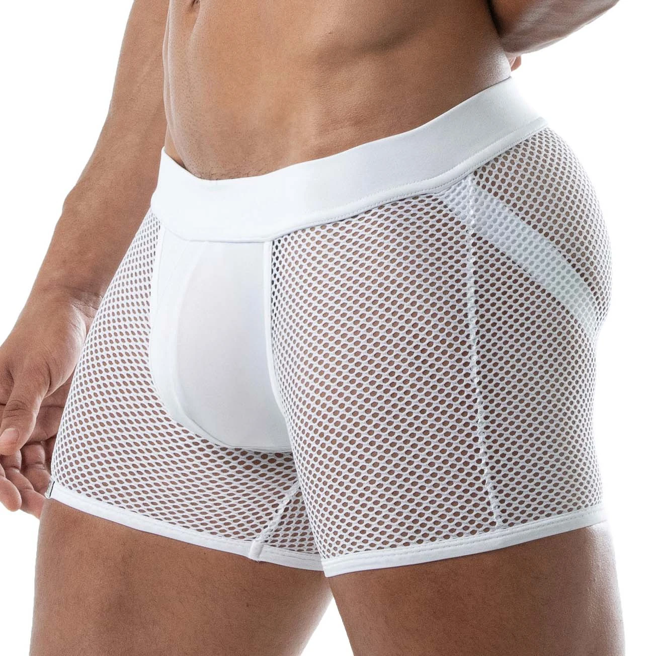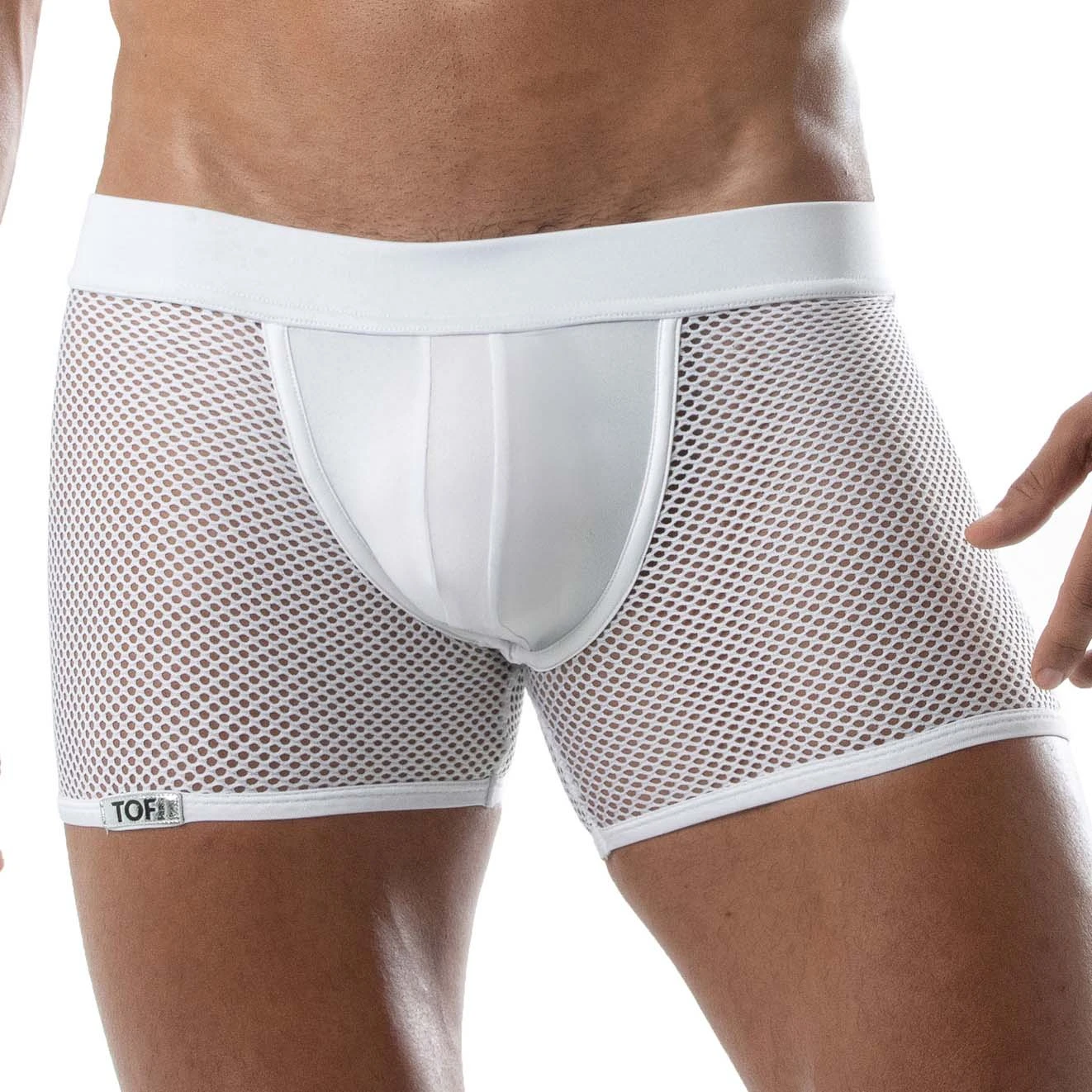Short Circuit Mesh TOF PARIS TOF239B. Short original à la fois 2 en 1: muni de bandes élastiques pour un effet Jockstrap, remontant les fesses. Poche frontale généreuse et bien mise en valeur pour un paquet XXL. Complètez le look avec le Circuit Mesh full harness 90% Polyester, 10% Elasthanne.