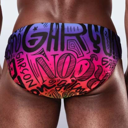 Slip de bain Garçon Extravaganza. Slip de bain avec des graffitis. Taille basse. Parfait pour être au top sur la plage ! Offre un très bon maintien. Agréable à porter, très léger. 82% Polyester, 18% Elasthanne.