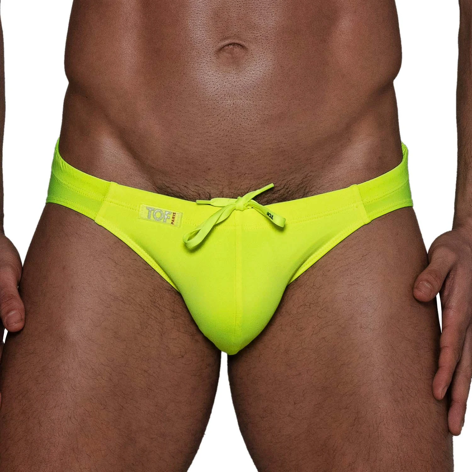 Slip de bain Neon TOF PARIS TOF269JF. Slip de bain taille basse, coupe minimaliste. Microfibre douce offrant un séchage rapide. Ceinture élastique avec cordon de serrage. Logo au nom de la marque sur la ceinture. 78% Polyamide, 22% Elasthanne