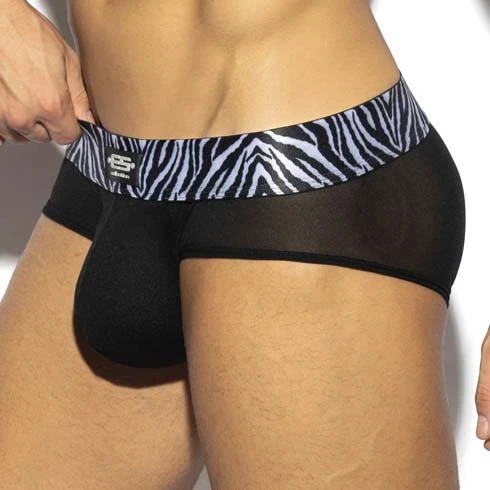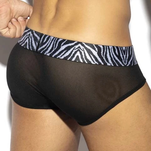 Slip ES Collection Zebra C-Through UN537. Découvrez ce Slip en tulle transparent. Poche frontale Push Up qui vous assure un excellent maintien et vous mettra en valeur. Ceinture élastique avec un imprimé zebré, logotée au nom de la marque. Taille basse et trÚs ajusté. 93% Polyester, 7% Elasthanne.