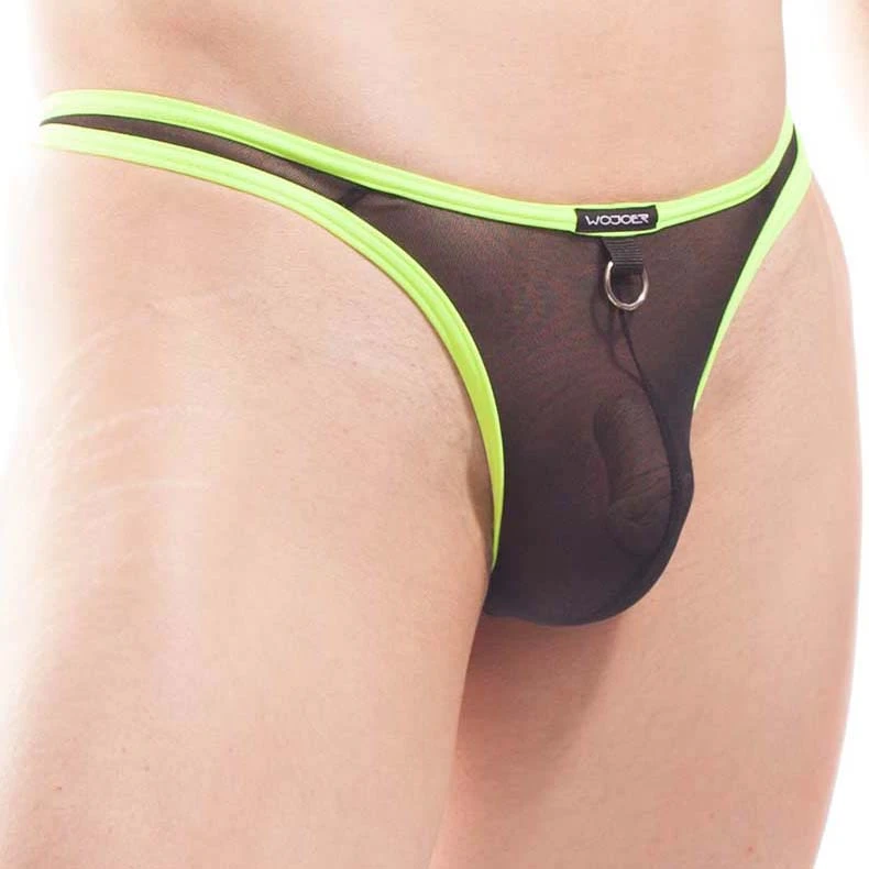 String Wojoer 333B77. Un String légèrement transparent, très leger. Maille extensible. Confort parfait et support optimal. Bordures de couleur contrastée. Anneau en métal à lavant. 96% Polyester, 4% élasthanne.