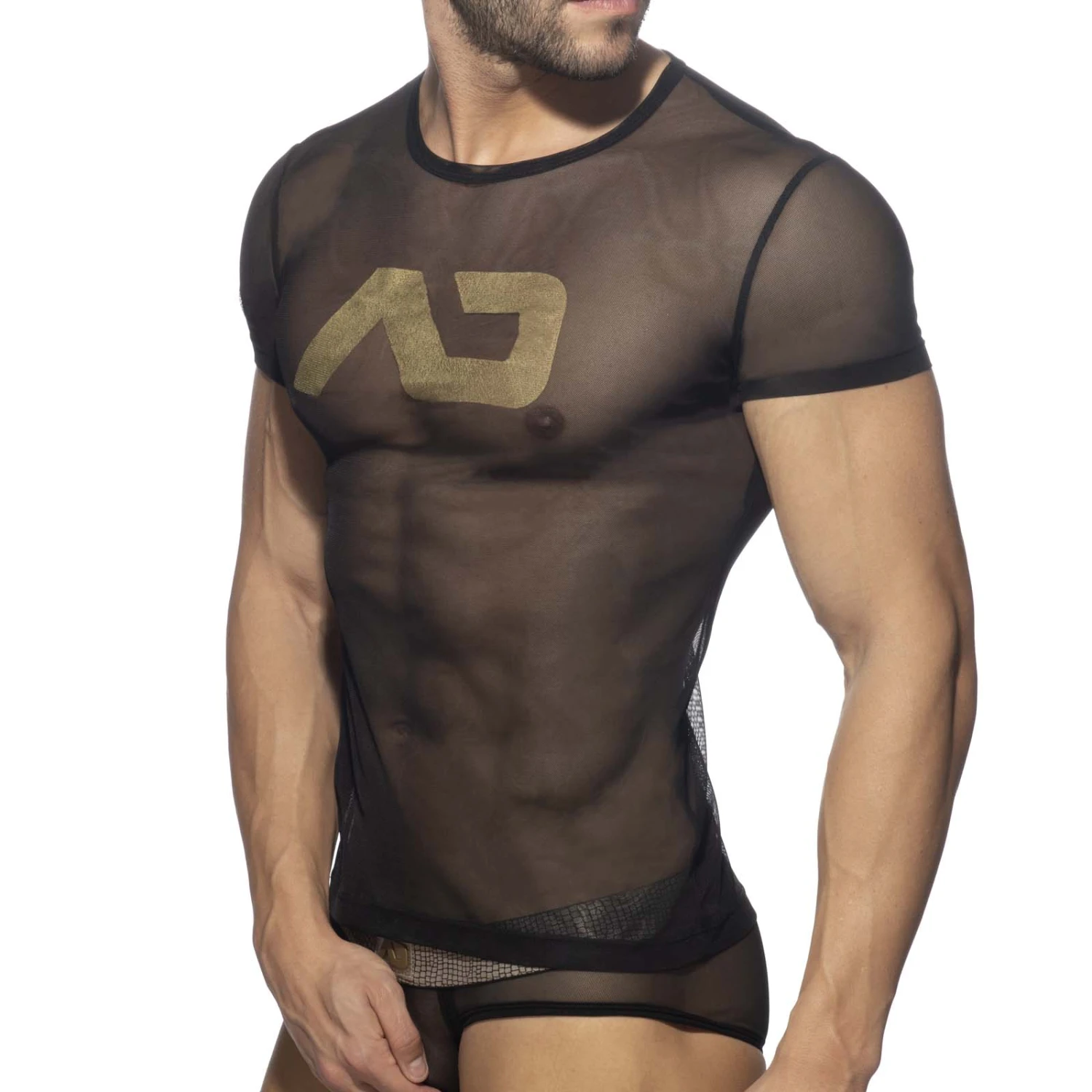 T-Shirt Addicted AD NET AD1020. Découvrez ce T-Shirt à la coupe ajustée. Vous allez adorer le porter. Logo AD imprimé sur le devant en or. Manches courtes et coupe sexy. 93% Polyester, 7% Elasthanne.