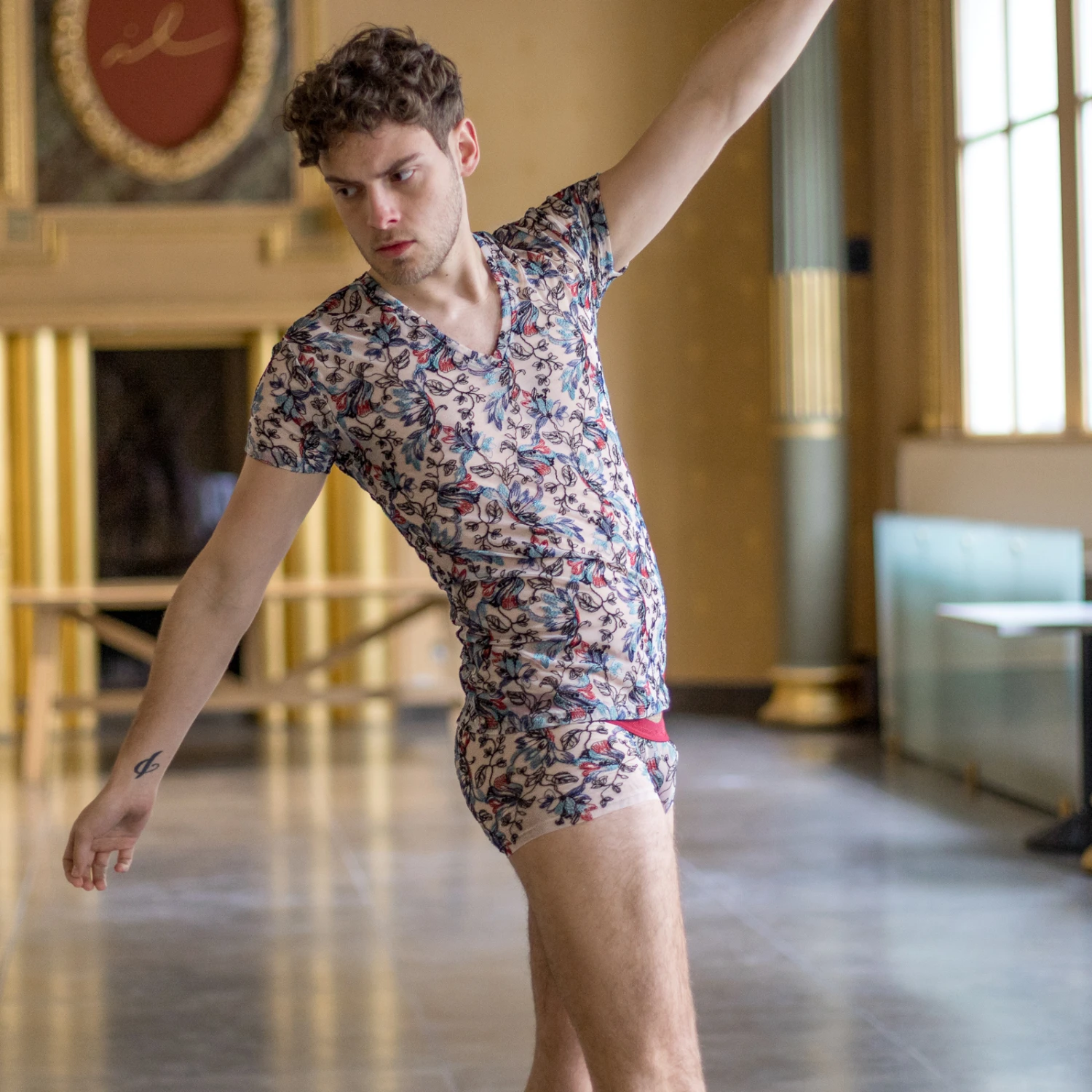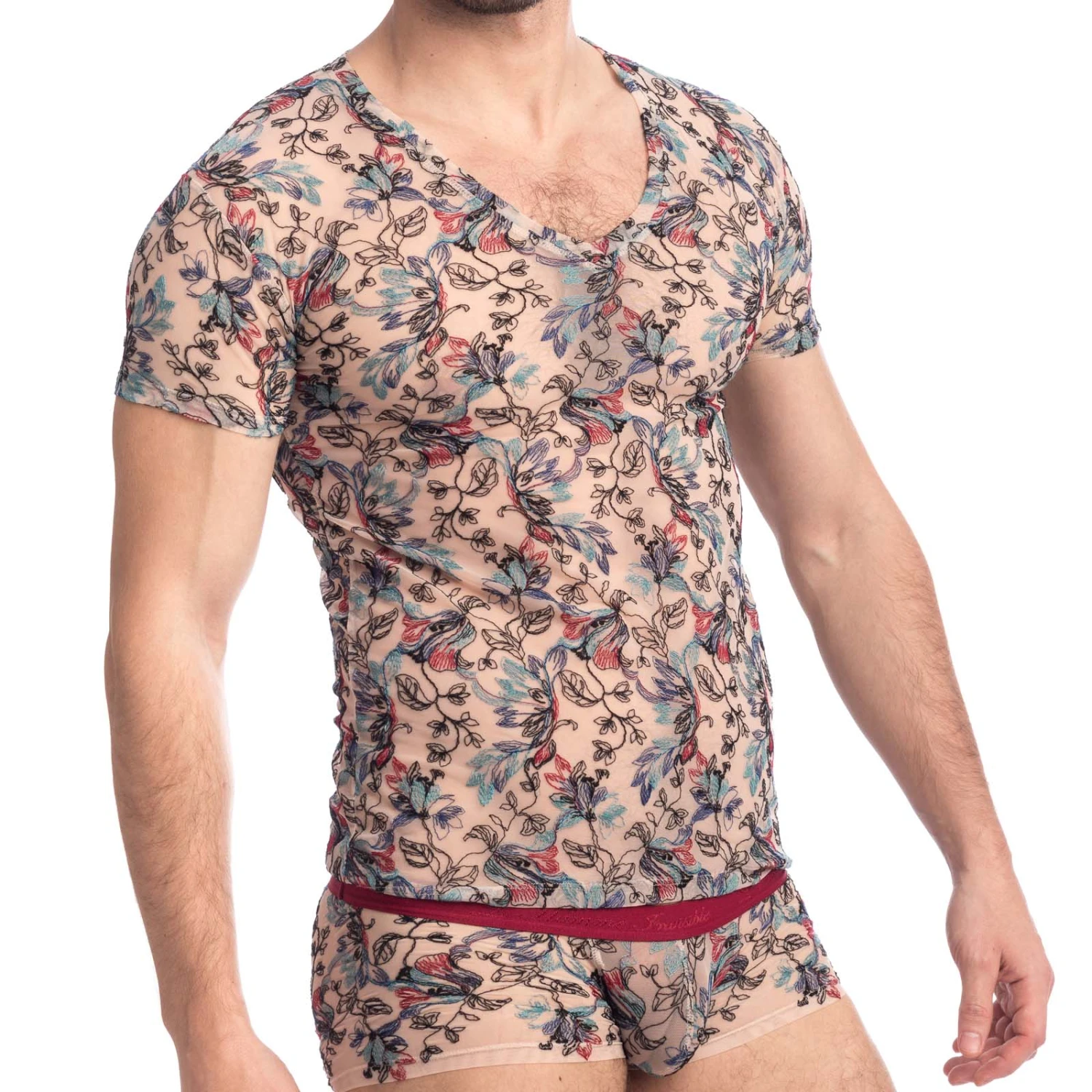 T-Shirt L Homme Invisible Fleurs de peau MY73FDP. Découvrez le charme irrésistible de ce t-shirt dans une matière avec des fleurs brodées, légèrement transparente ornée de feuillage. Col V et manches courtes. Il laisse apparaître votre peau grâce à sa transparence délicate et subtile. Le style séducteur de ce t-shirt luxueux vous rendra encore plus sexy que vous êtes. Coupe ajustée. Une somptueuse collection alliant confort et élégance pour être romantique plus que jamais. 46% Polyamide, 46% Polyester, 8% Elasthanne.