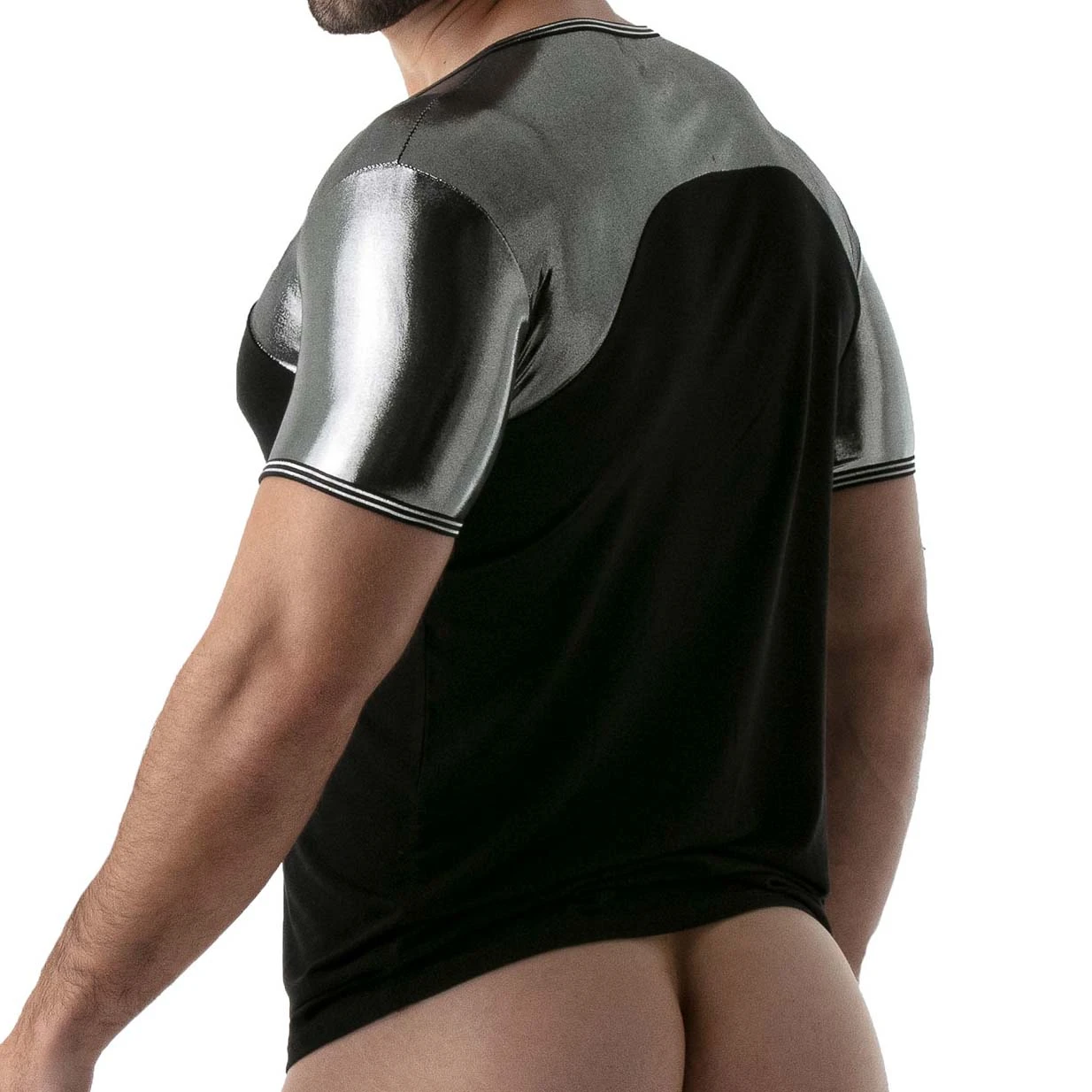 T-Shirt Metal TOF PARIS TOF134A. T-Shirt sexy en microfibre stretch et respirante. Très agréable à porter. Bordures en lurex. Coupe mettant en avant vos pectoraux. Sécher à l’ombre. Ne pas repasser. 94%Polyester 6%Elasthanne
